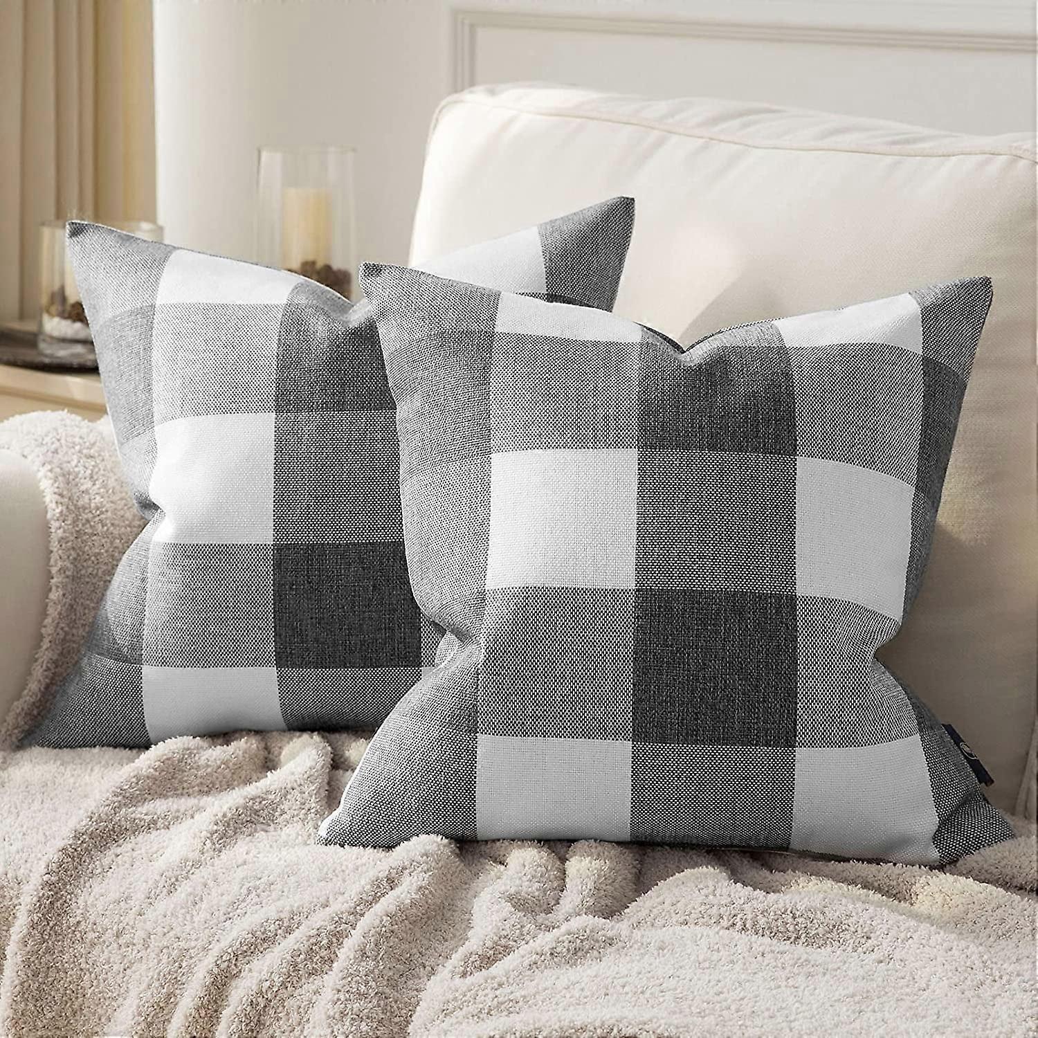 2PCS Buffalo Check Plaid Throw Pillow Covers Throw Pillows Farmhouse Square Pillow Cases for Halloween Fall Home Decor, Orange 18 x 18 Inches