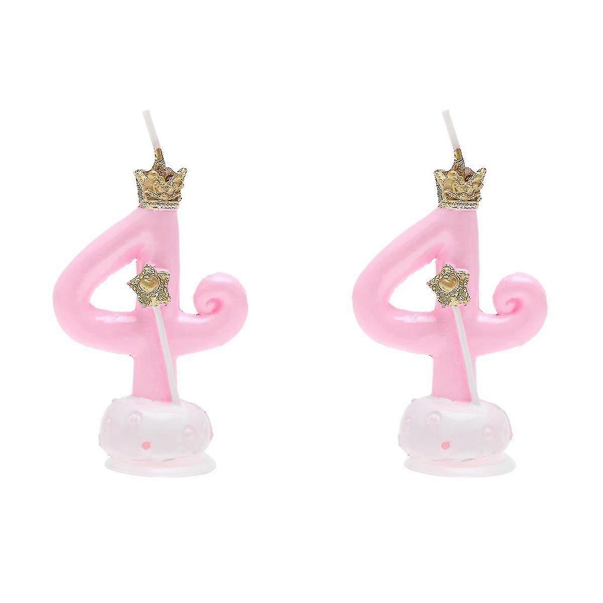 2pcs Party Cake Candles Birthday Digital Candles Small Crown Decorated Candles For Decoration Number 4 Crown Design (pink)
