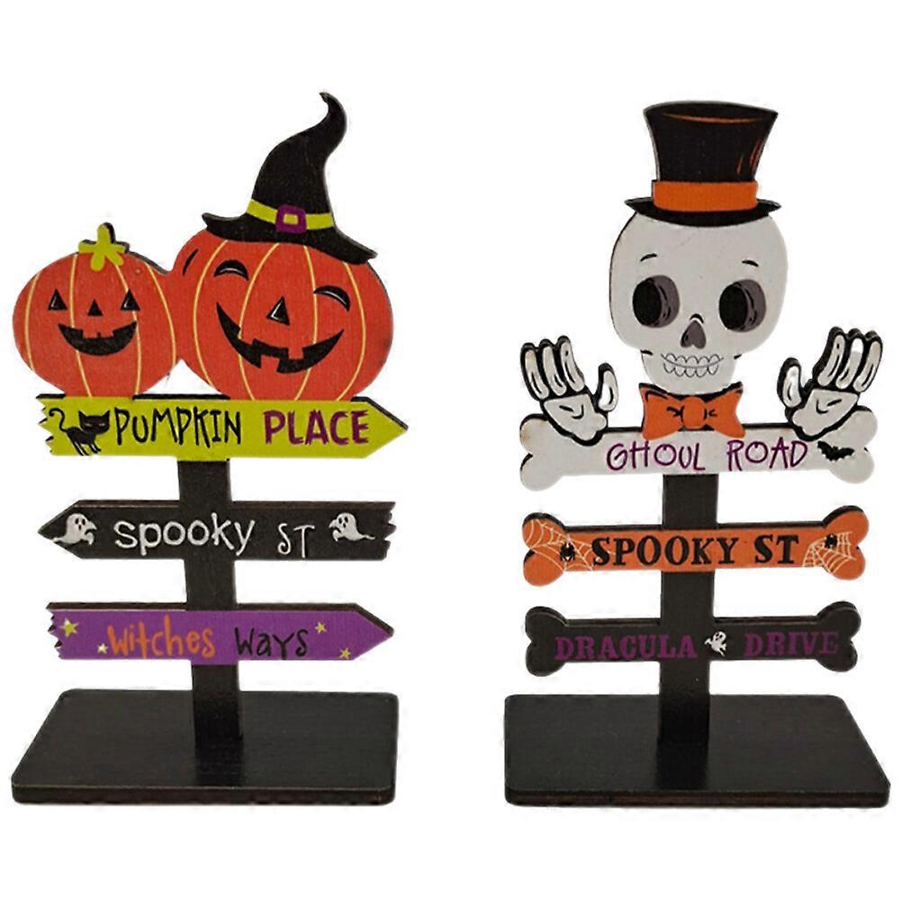 2pcs Halloween Table Decor Table Wooden Plaque Halloween Party Supply Decorative Wooden Sign