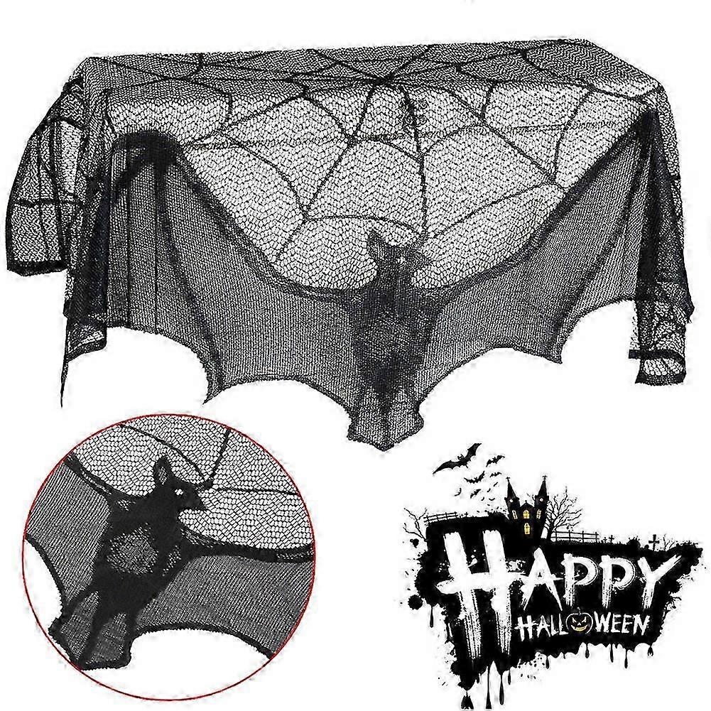 2pcs Halloween Curtain 95 * 57cm Black Lace Spider Web Bat Curtain Decoration