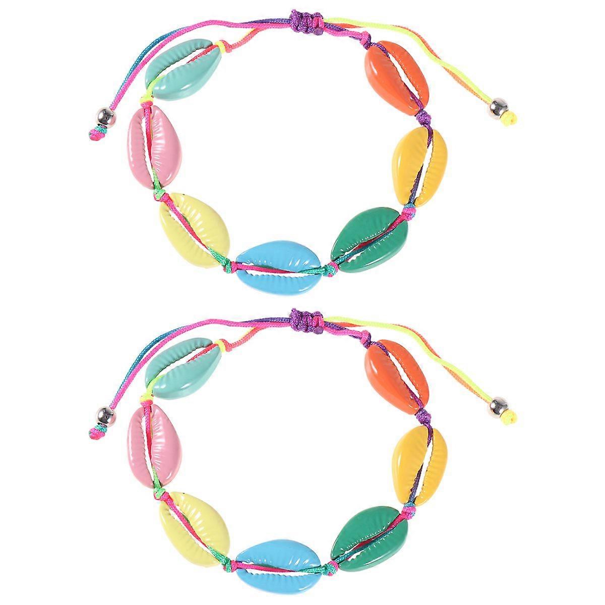 2pcs Hawaii Sea Woven Bracelet Girls Fashion Hand Chain Decor Colorful Shell Bracelet Jewelry (Style B)