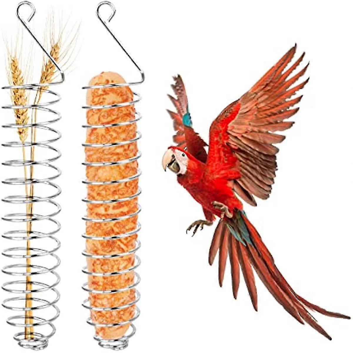 2pcs Hanging Parrot Feeder Bird Fruit Holder Skewer Hanging Parrot Feeder Stainless Steel Bird Skewer For Parrot Bird(15.54.4cm)