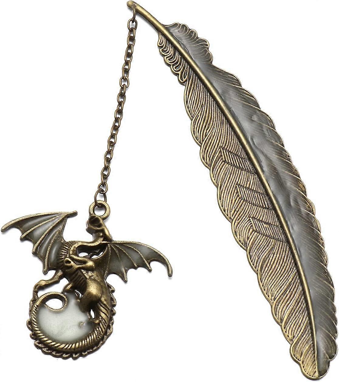 2pcs Vintage Metal Feather Bookmarks, Luminous Bookmarks, Beautifully Handcrafted 3D Antique Dragon Bookmarks