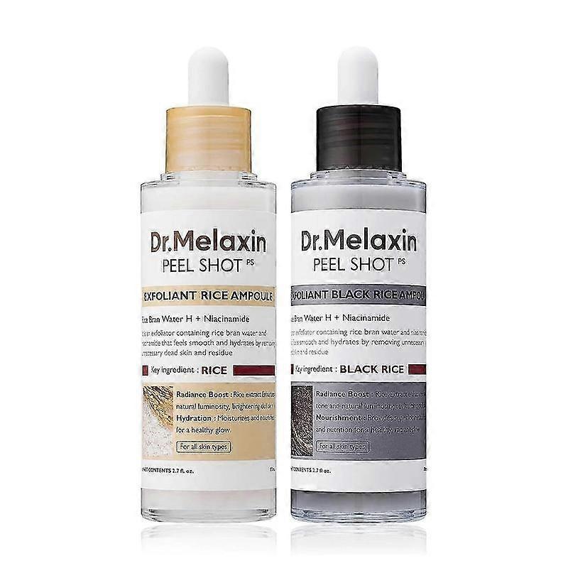 2PCS Peel Shot Glow Rice Ampoule, White rice ampoule+Black rice ampoule Soft Exfoliating Face and Body Scrub Dead Skin Cells