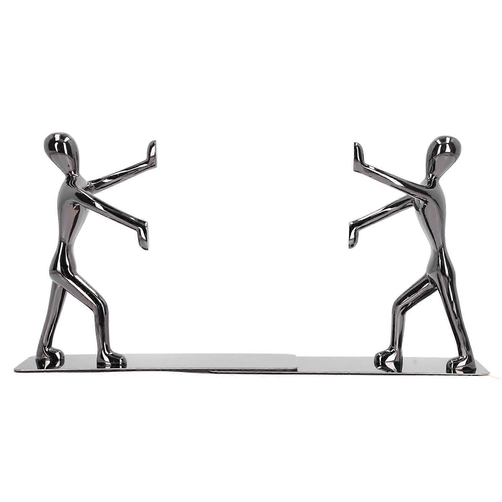 2pcs Black Book Holders Human Shape Modern Stylish Special Design Stainless Steel Bookends Decorative