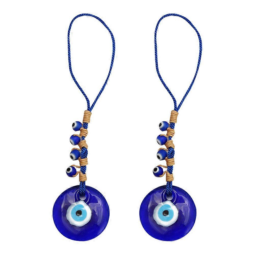 2pcs Blue Evil Eye Pendants Handmade Craft Bead Necklace Key Chain Accessories
