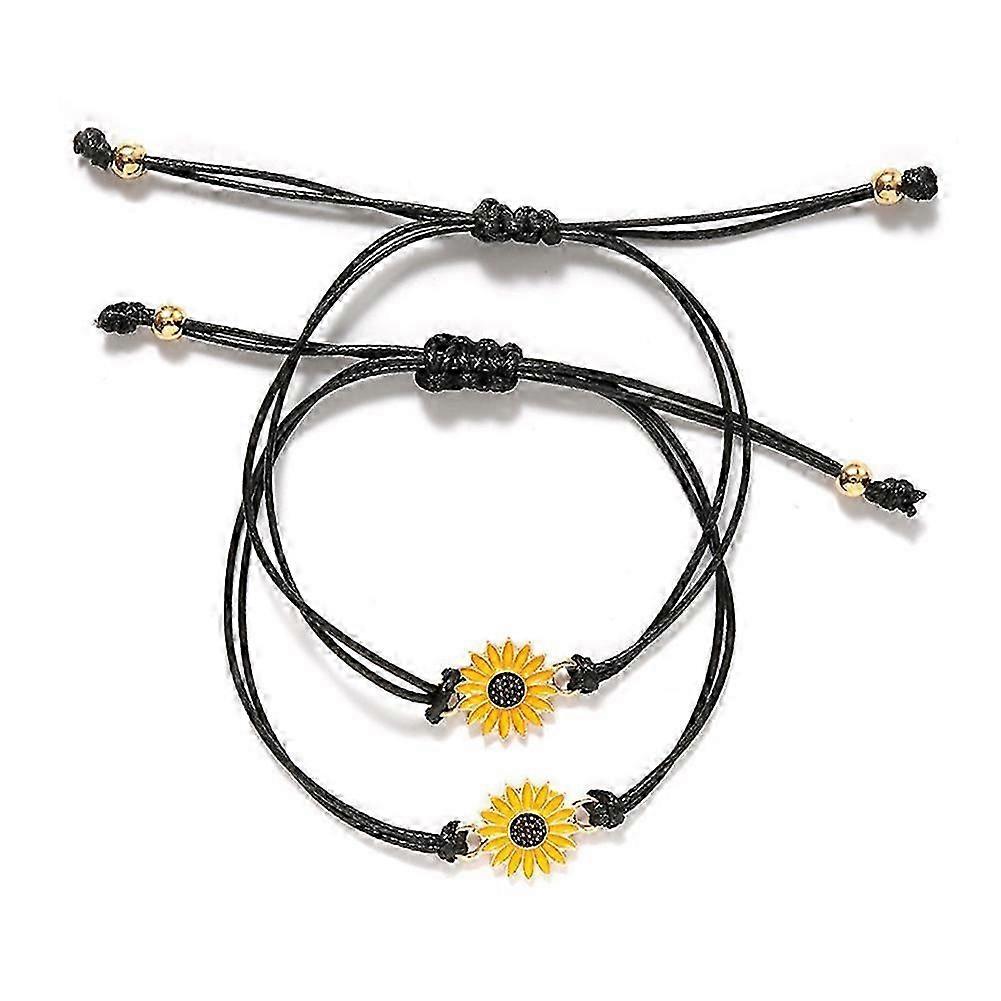 2pcs Fashion Sunflower Wish Bracelet Adjustable Braided Bracelet Summer Alloy
