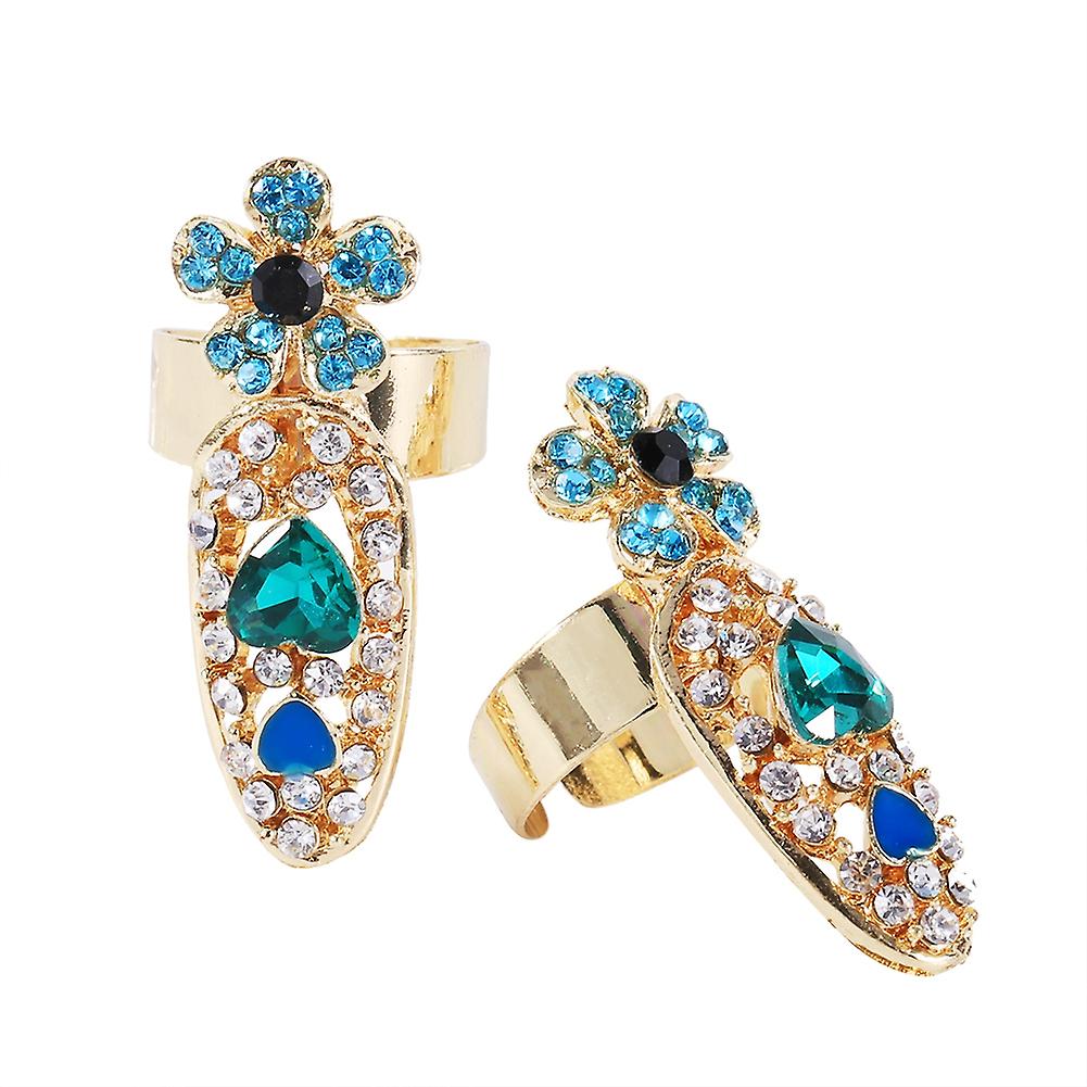 2pcs Fashion Style Bowknot Crown Crystal Finger Nail Art Ring DIY Decoration #12