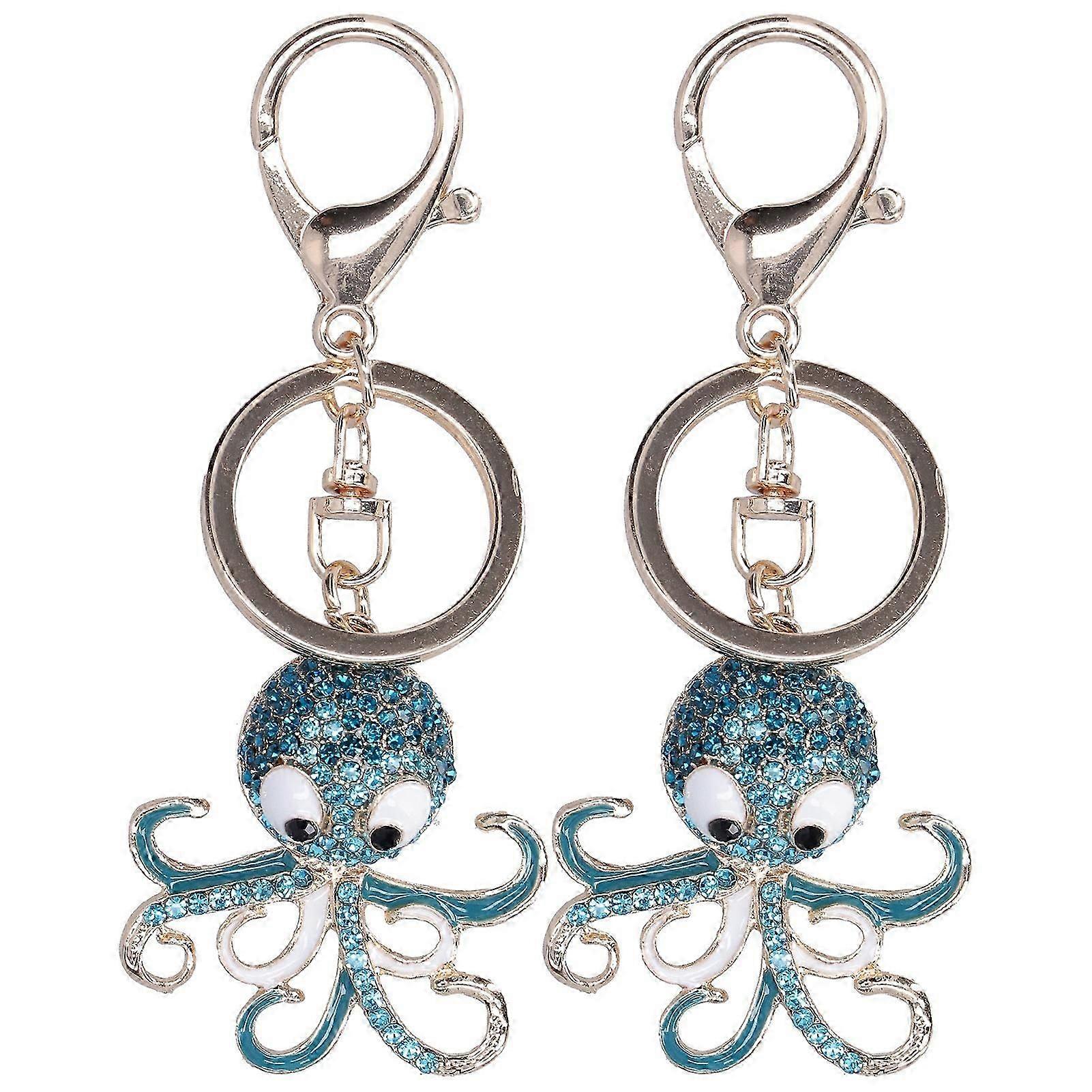 2PCS Fashion Octopus Shaped Rhinestones Keychain Key Ring Bag Charm Pendant Gift(Blue Blue )