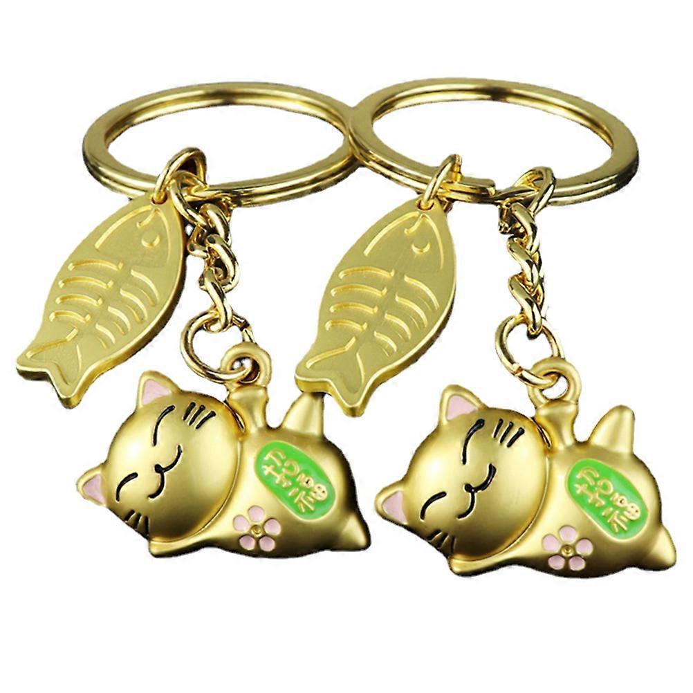 2PCS Fortune Cat Key Pendants Cartoon Keychains Durable Key Buckles Bag Charms Decorative Accessories