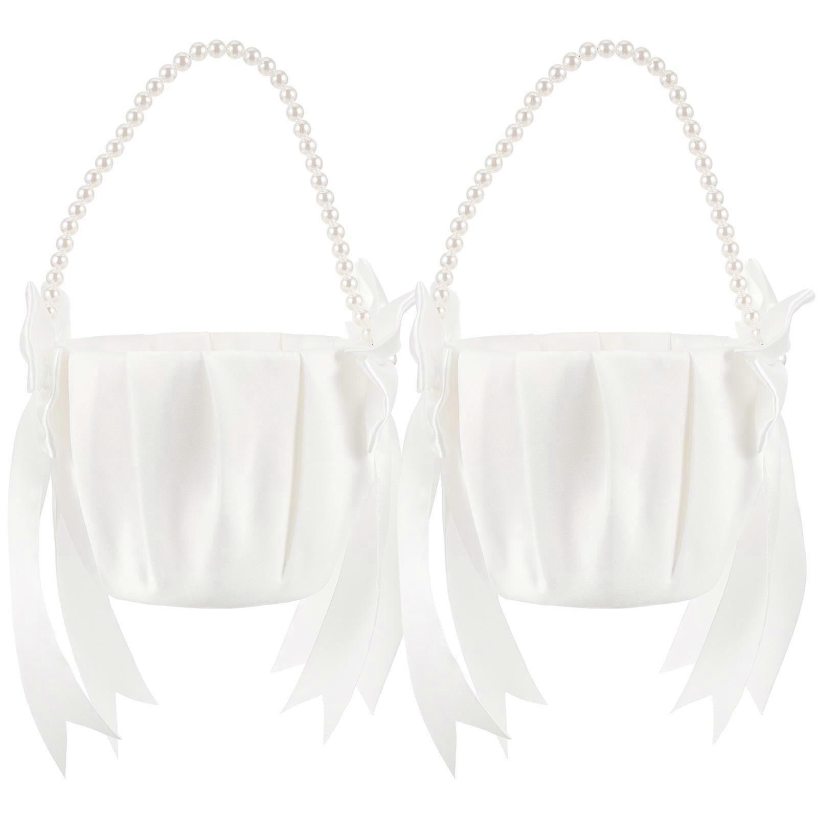 2pcs Flower Girl Baskets Wedding Flower Girl Bride Basket Wedding Handle Basket Supply