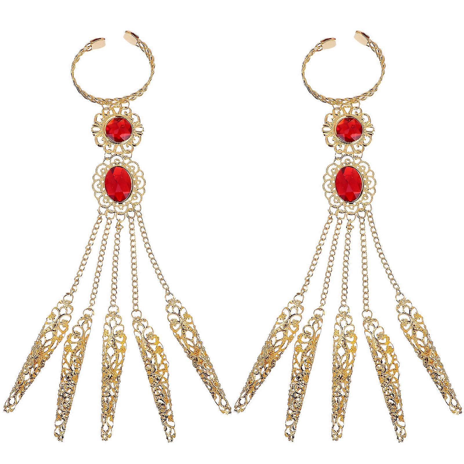 2pcs Belly Dance Gypsy Egyptian Bracelet with Finger Nail Costume Accessories