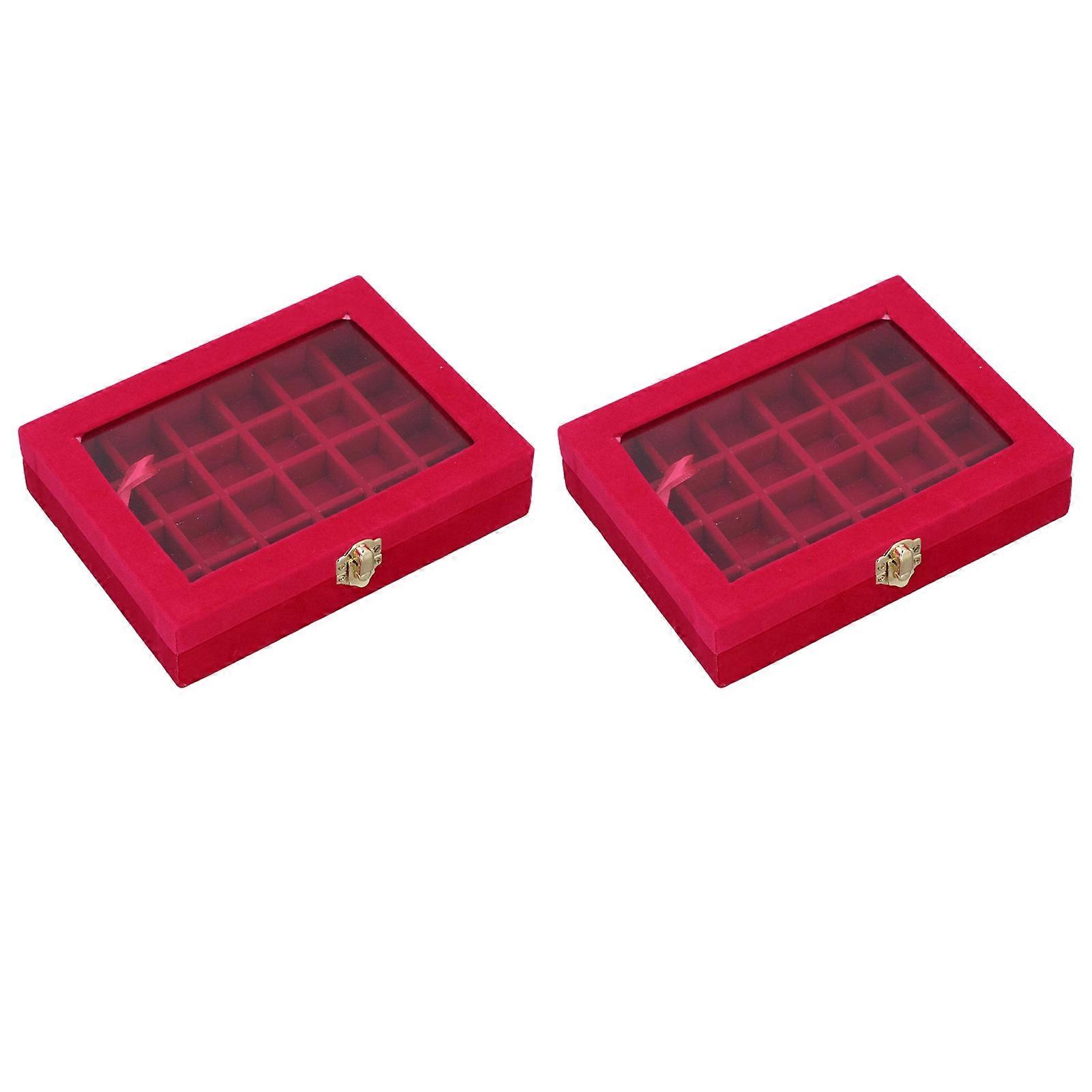 2pcs Velvet Jewelry Storage Box 24 Grids Jewelry Ring Display Box with Transparent Lid for Earrings Rings Bracelets Brooches