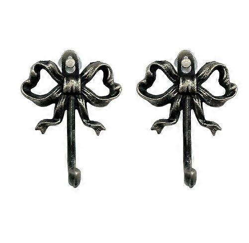 2pcs Bow Wall Hooks: Retro Iron Metal Hat & Robe Hangers - Decorative Entryway Organizers for Coats Bathroom Towel Displays - Farmhouse Accessories