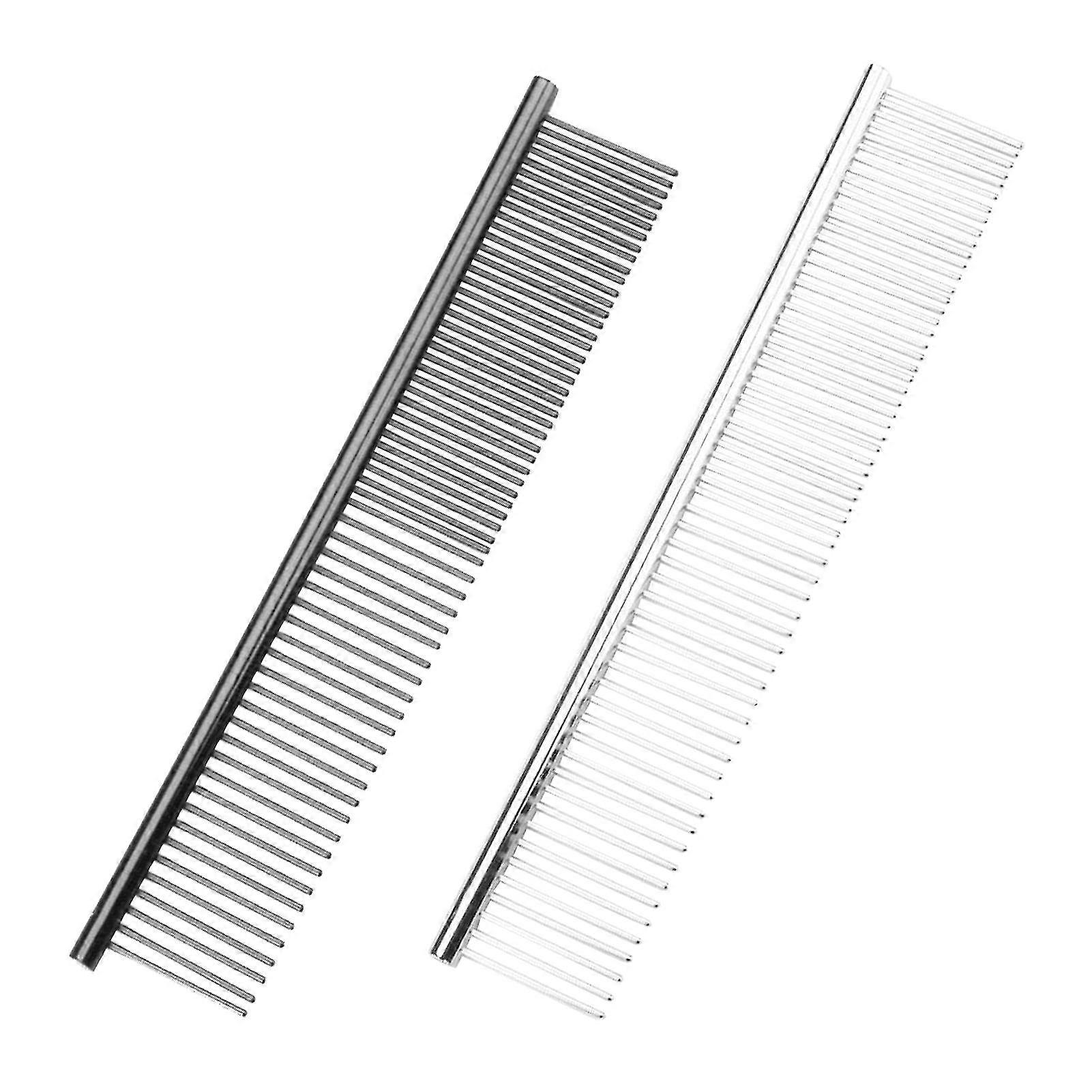 2pcs Home Dog Cat Tool Stainless Steel Professional Detangling Grooming Pet Comb