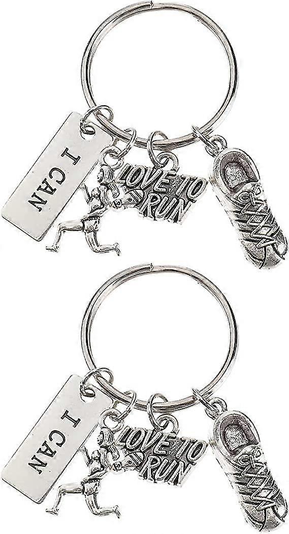 2pcs Marathon Running Keychains Alloy Pendant Gift Quotes I Can Key Holder Ornaments