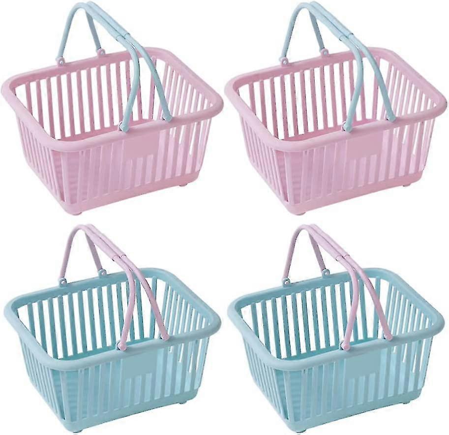 2pcs Mini Shopping Basket Grocery Baskets Stackable Kids Toy Storage Containers Bins With Handles Sundries Organizer For Bathroom Kitchen Pretend Pla