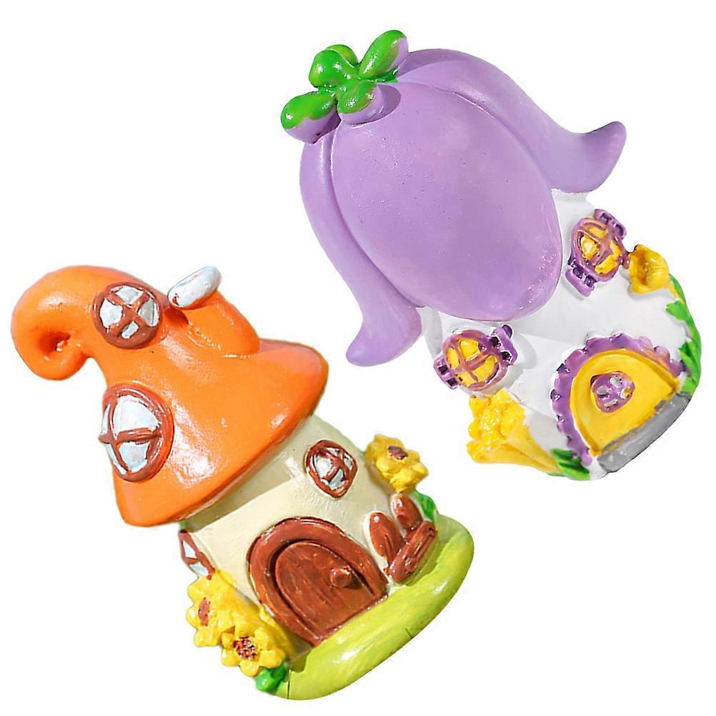 2Pcs Mini Resin House Decor for Fairy Garden Assorted Color Household Products