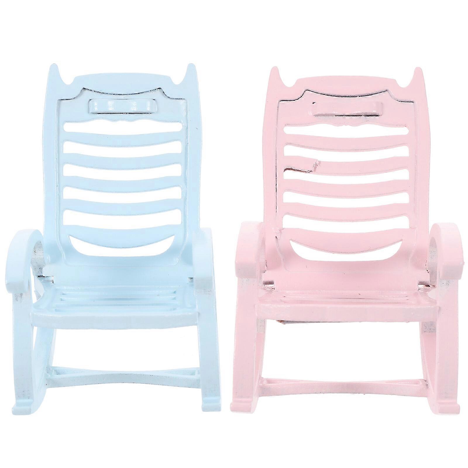 2pcs Mini Wooden Beach Chairs Doll House Chair Models Wooden Rocking Chairs