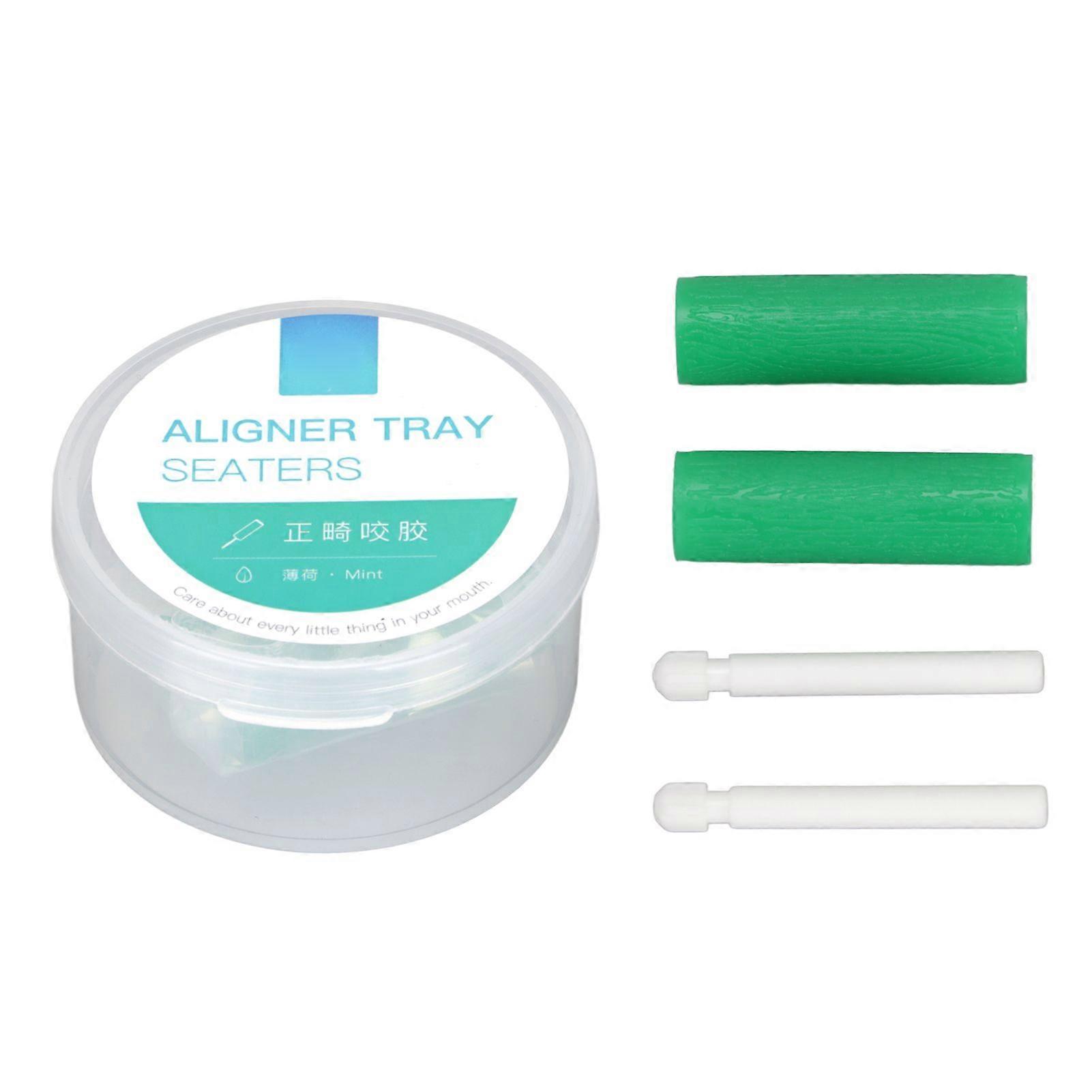 2PCS Mint Flavor Orthodontic Chews Rubber Aligner Chewies with 2PCS Handles for Dental CareYMMR)