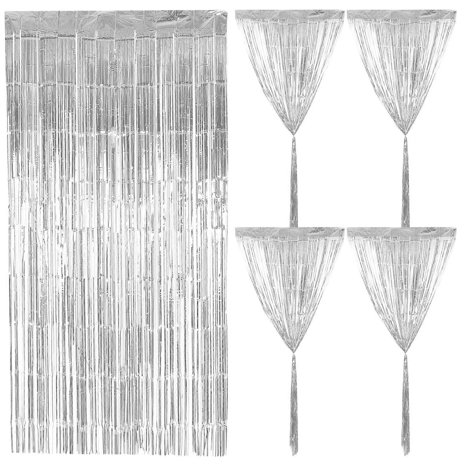 2pcs Metallic Tinsel Fringe Curtains Party Backdrop Curtains for Birthday Graduation