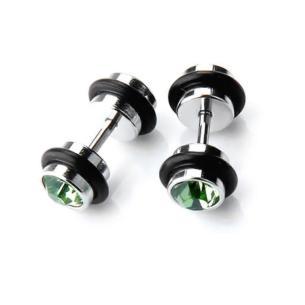2pcs Mens Earring Ear Stud Stainless Steel Green CZ Crystal Fake