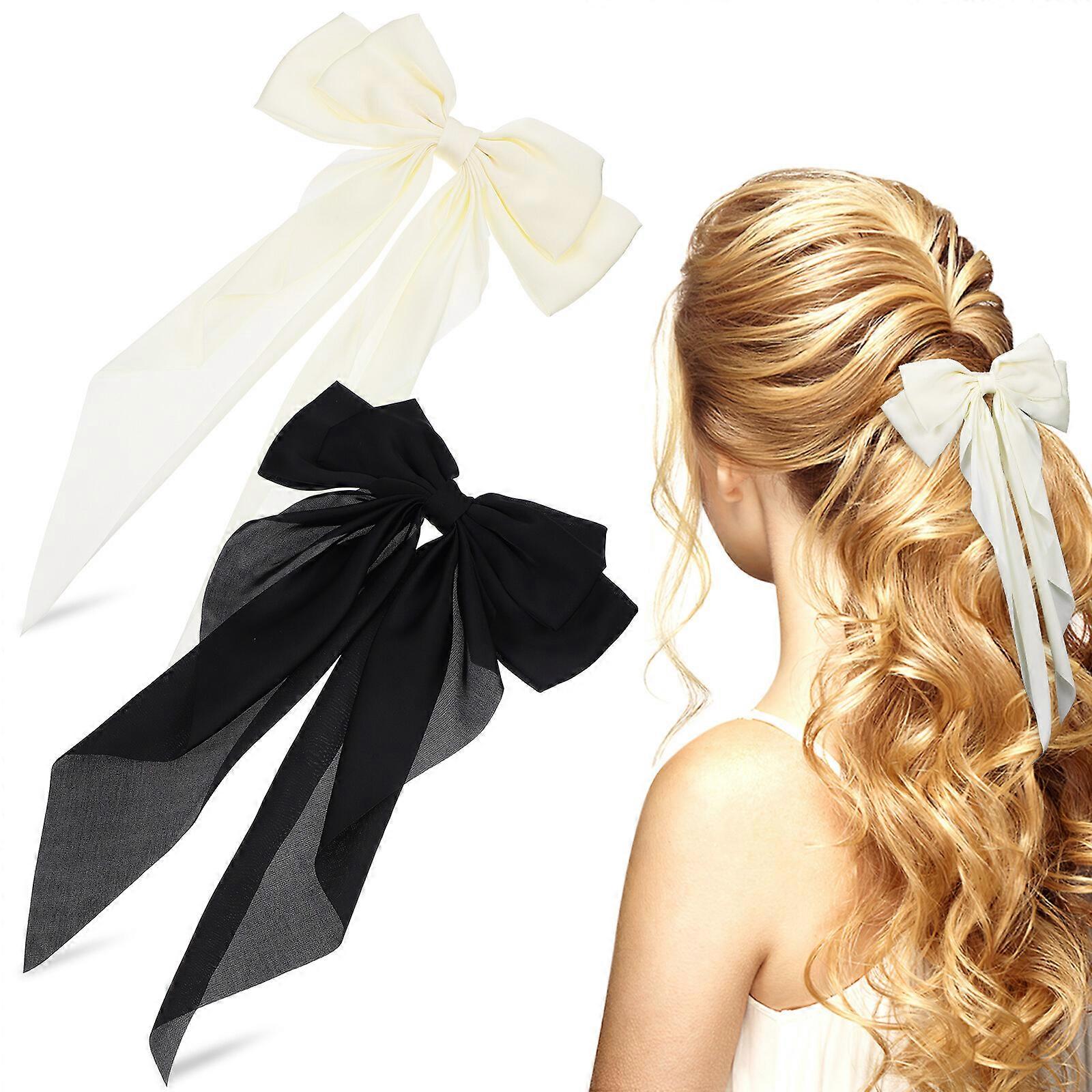 2pcs Large Bow Hair Clips Big Bow Clips Ribbon Tail Barrettes Bowknot Barrettes