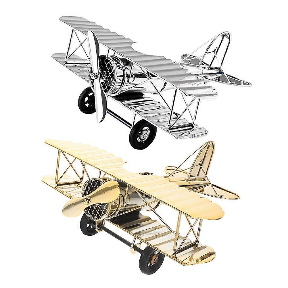 2pcs Retro Airplane Model Metal Plane Aircraft Model Room Desktop Decoration Photo Prop