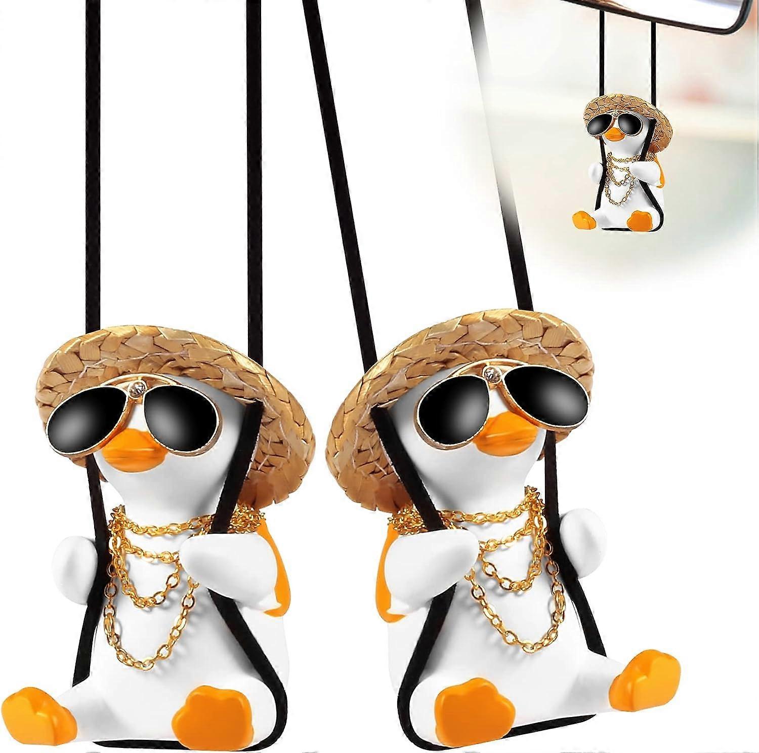 2pcs Rocking Duck Car Decorations Duck With Glasses Mirror Car Charm Hanging Interior Fun Gift