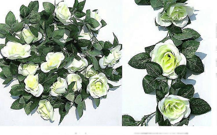 2pcsartificial Roses Garland Silk Roses Vine Faux Flower Hanging Garland With Green Leaves Fake Floral Arrangement