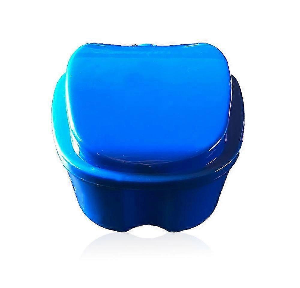 2pcs Dentures Box, Dentures Box With Rinse Basket, Dark Blue Light Blue 93*94*66mm
