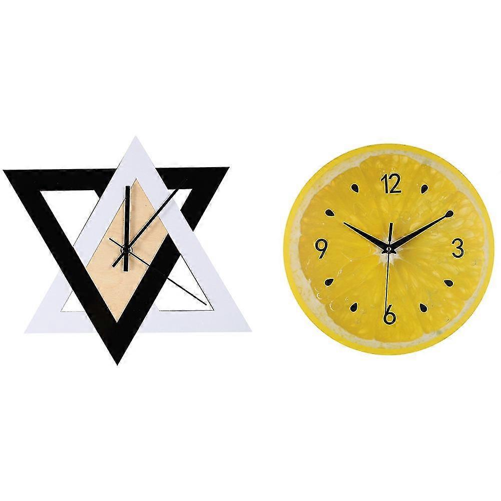 2pcs Nordic Personality Black And White Creative Wall Clock With Lemon Fruit Wall Clock Lime Modern