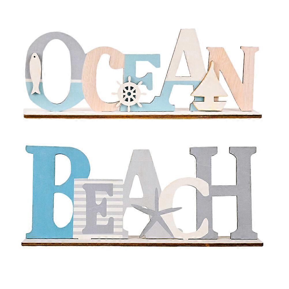 2PCS Mediterranean Style Wooden Ocean and Beach Sign Desktop Ornament Decor Sign
