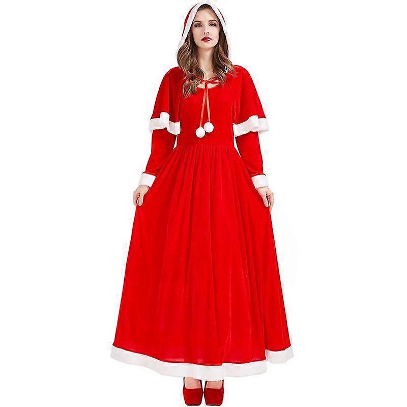 2pcs Women's Santa Claus Dress Gold Velvet Christmas Party Costume