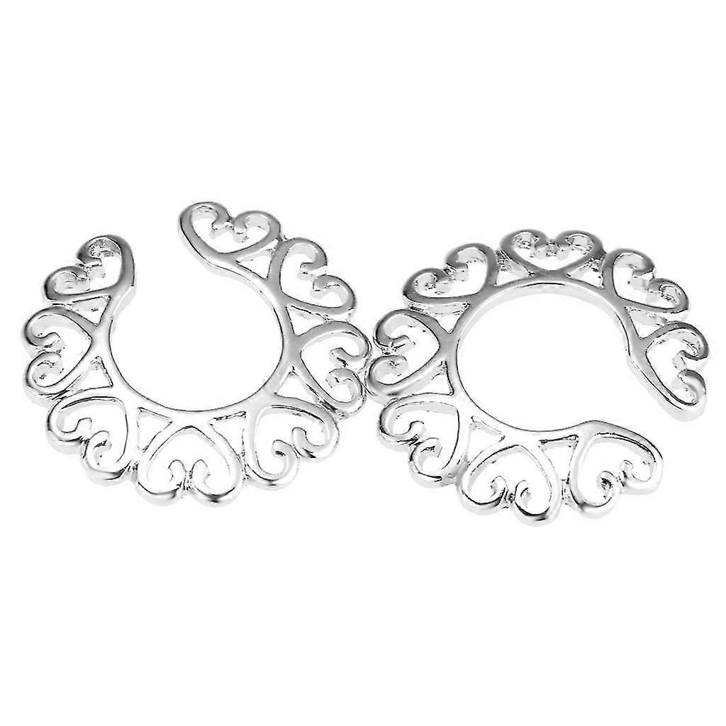 2pcs Love Heart Stainless Steel Floral Clip On Mamilo Ring Adjustable Gauge
