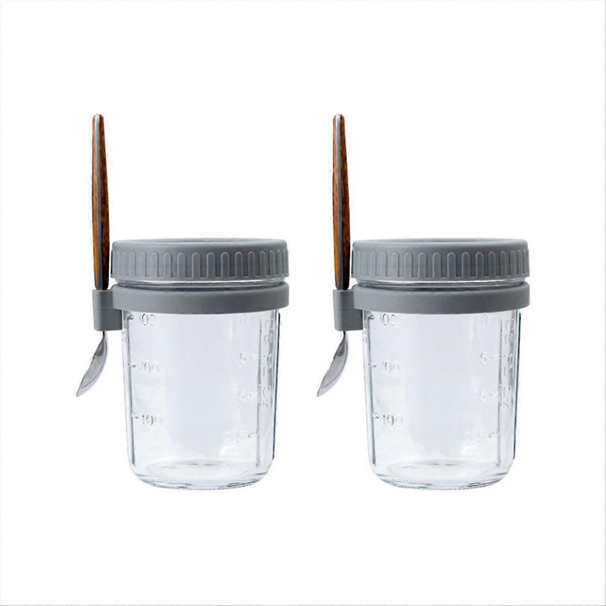 2pcs Breakfast Cup Airtight Oatmeal Jar with Cover and Spoon grey