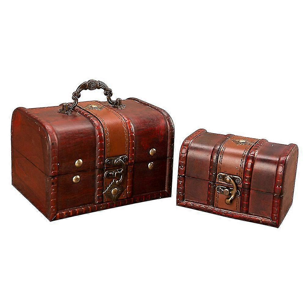 2pcs Wooden Box Creative Jewelry Case Lockable Storage Box Vintage Trinket Case Retro Makeup Organizer For Home