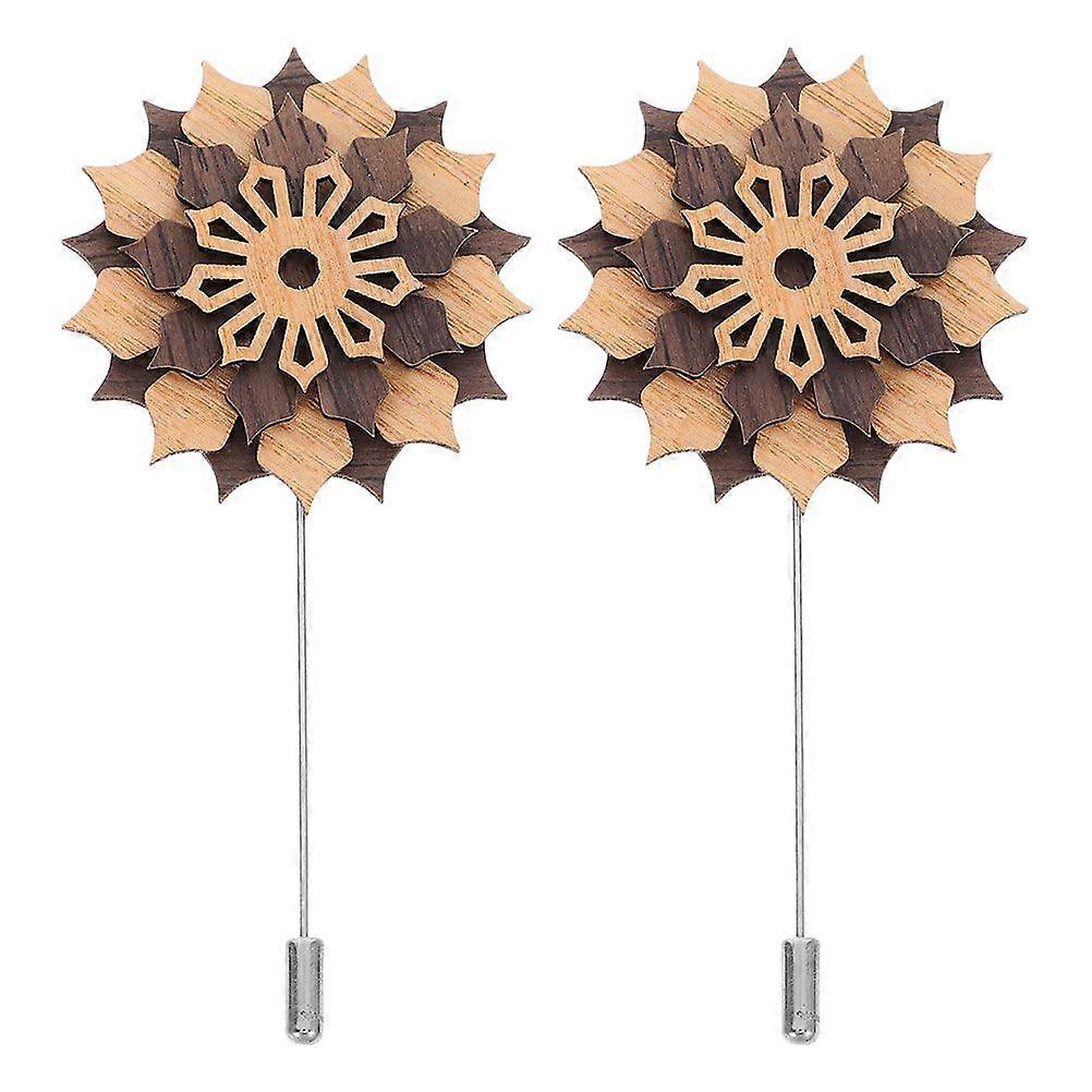 2pcs Wooden Flower Korean Brooch Alloy Pin Fashion Lapel Pin For Men For Clothes Bags Hats Accessories