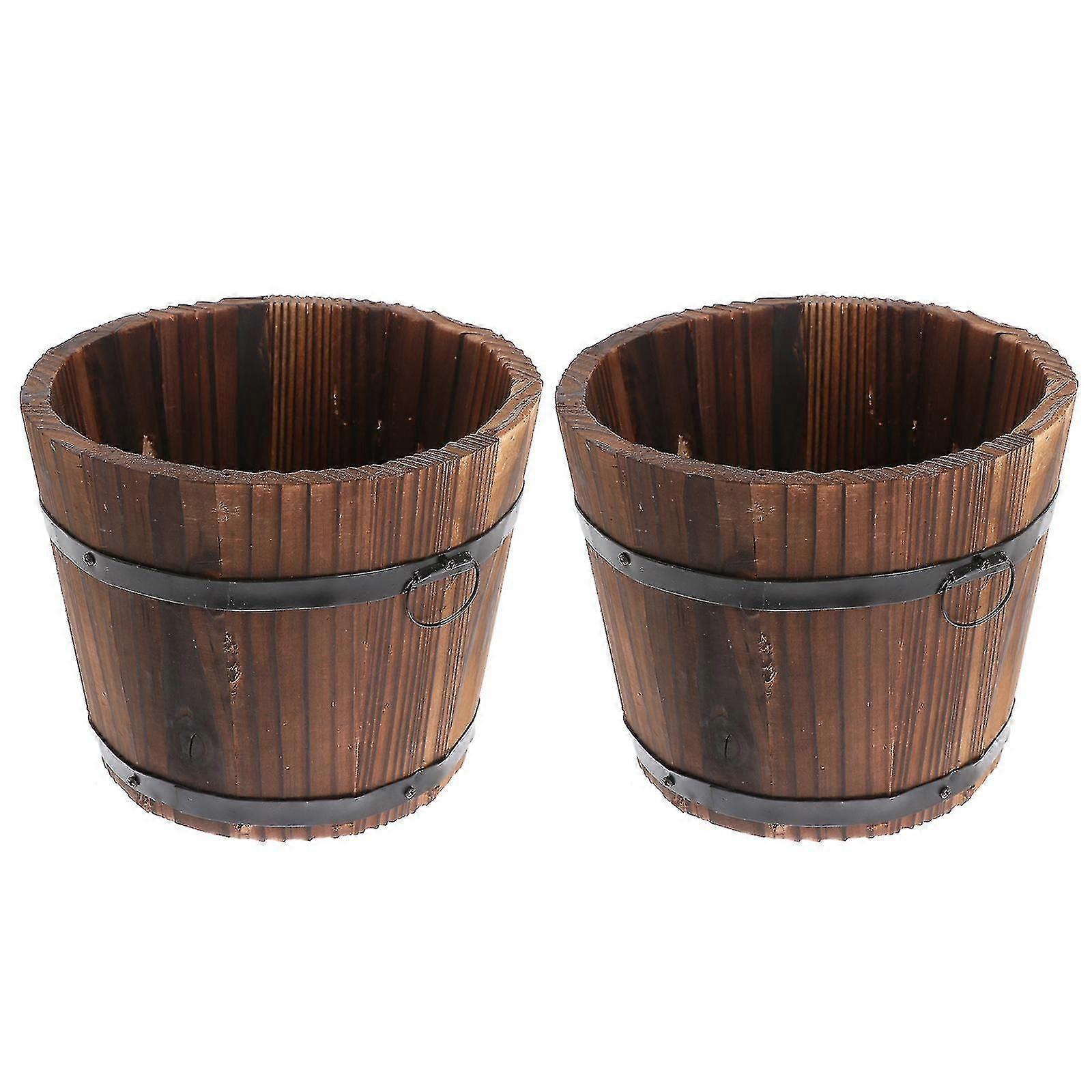 2pcs Wooden Flower Pots Practical Succulent Planter Home Garden Decoration