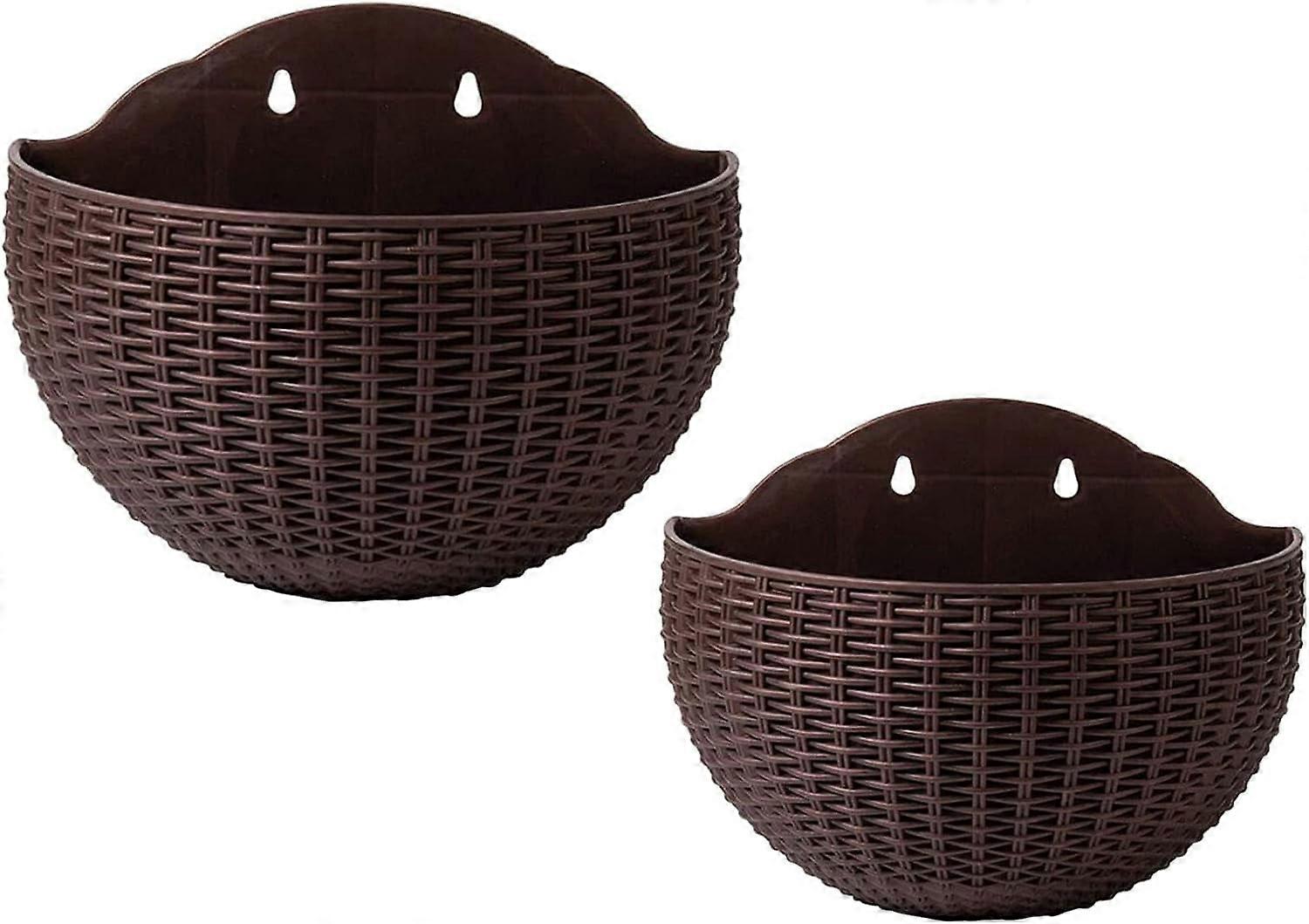 Creative Semicircular Resin Imitation Rattan Wall Hanging Flower Plant Pot,90 degrees back section side can matched closely to the wall. Lightweight and Weatherproof - Made of high quality weatherproof PP material, with perfect light weight feature for wall-mounted.