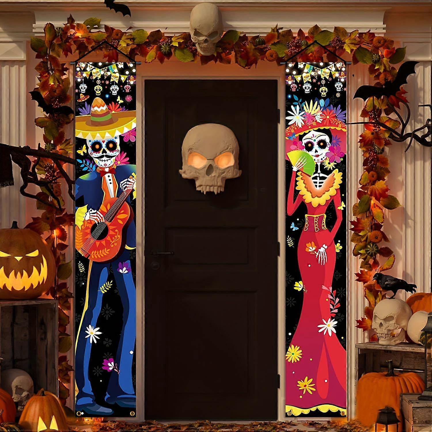 2pcs Day Of The Dead Decorations Dia De Muertos Decor Banner Mexican Dia De Los Muertos Porch Sign D