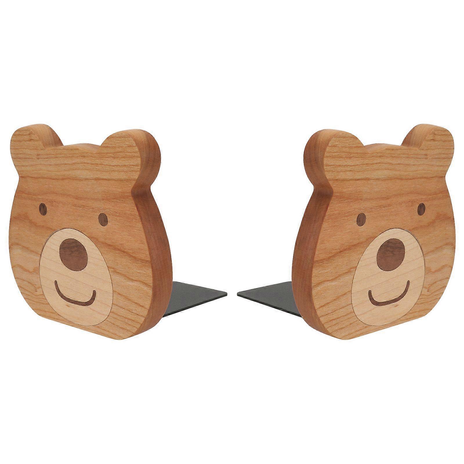 2pcs Cartoon Bear Shaped Bookends Wooden Book Stands Creative Bookends