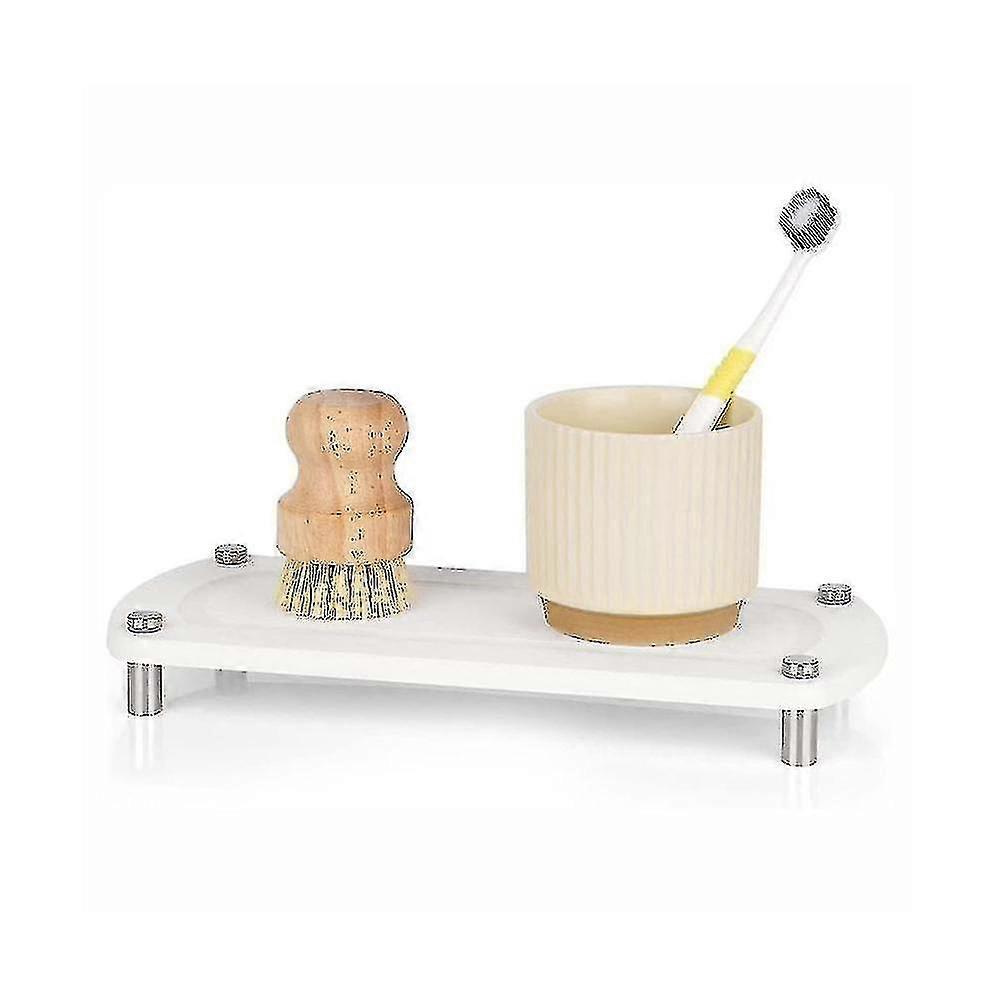 [Dry Instantly]Different from sink organizers, sink organizer is made of environmentally friendly and durable diatomaceous earth, which can twice weight in water in seconds, keeping your bathroom and kitchen countertops dry, Also keep your dry.[Size and Load Capacity]The size of the kitchen sink sponge holder is about 28 x 11 x 2.5cm, kitchen organizer is 0.8 inches and wider than ordinary sink organizers. The kitchen sink soap tray can to 30 lbs. Kitchen sink accessories can be placed in many without taking up too much space.[Practical and Multifunctional]The kitchen countertop organizer can hold not only cleaning bottles, dish brushes and sponges, also soap brushes, candles and essential oils. The kitchen sink can also moisture from wet cotton towels. raised base and 0.87-inch raised shelf quick drying of and countertops from water damage.[Artisan Design]The bottom of the sink tray is made of 4 high-grade stainless steel materials to the sink case, waterproof and rust-proof. It can withstand the harshest wet conditions, practical and easy to install, no tools required, use the simple screw feet we , you can your new kitchen organizer in less than a .[Beautiful and Functional]Modern artwork to decorate your kitchen or bathroom. You can place it on a table, shelf or fireplace and use it to decorate your entryway, kitchen, living room or bathroom. Bathroom Sink Organizer The simple and elegant design of the water ripple surface fits any setting, creating a harmonious balance between form and function.Color: whiteMaterial: diatom Package Contents:2 x absorbent coasterOnly the above package content, other products are not included.Note: Light reflection and different displays may cause the color of the item in the a little different from the real thing. The measurement allowed error is +/- 1-3cm.