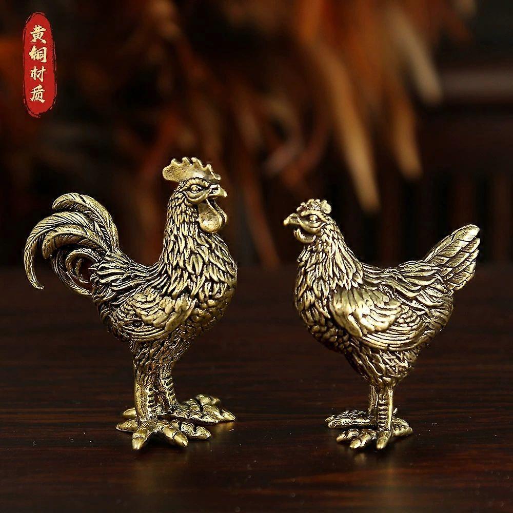 2pcs Brass Chicken Figurines: Copper Rooster And Hen Statues Set Zodiac Animal Desk Decorations for Home Decor Feng Shui Wealth Ornaments