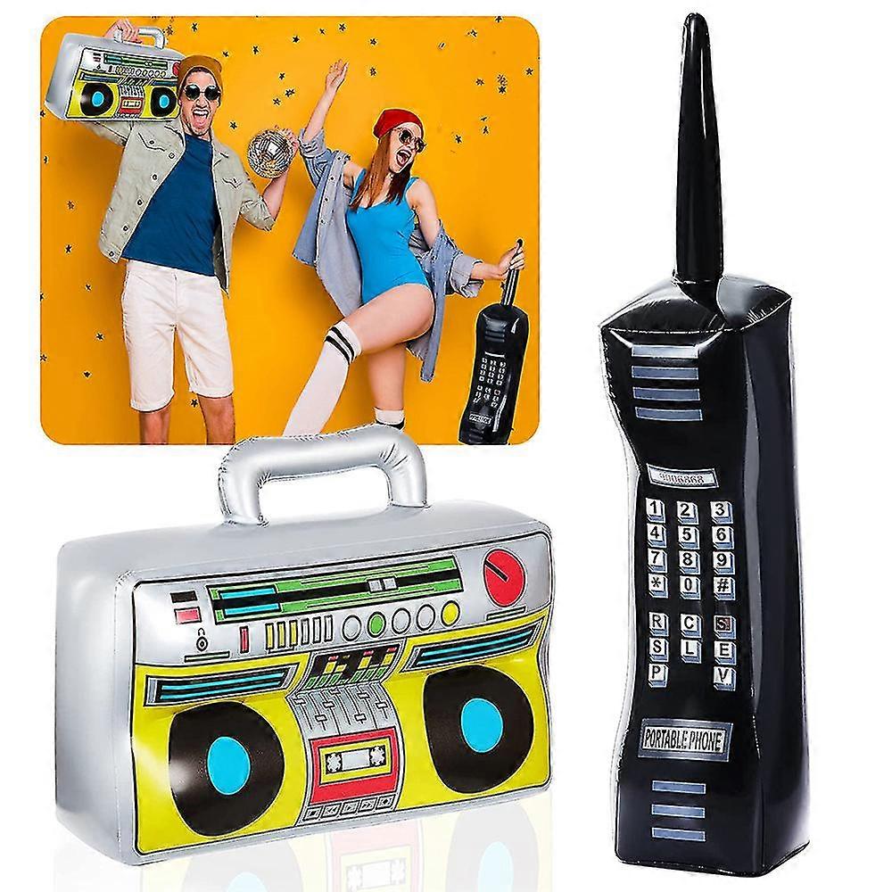 2pcs Inflatable Balloons Radio Boombox Mobile Phone Balloon Props For 80s 90s Party Decorations Hip Hop Theme Supplies