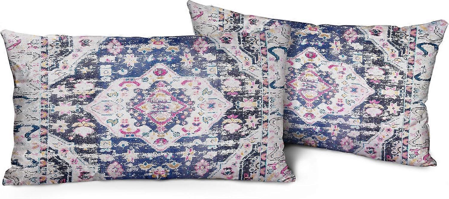 2PCS Boho Pillow Covers 12x20 Inch, Persian Carpet Blue Vintage Throw Pillow Case Soft Rectangle Pillowcases for Home Decor Sofa Car Living Room