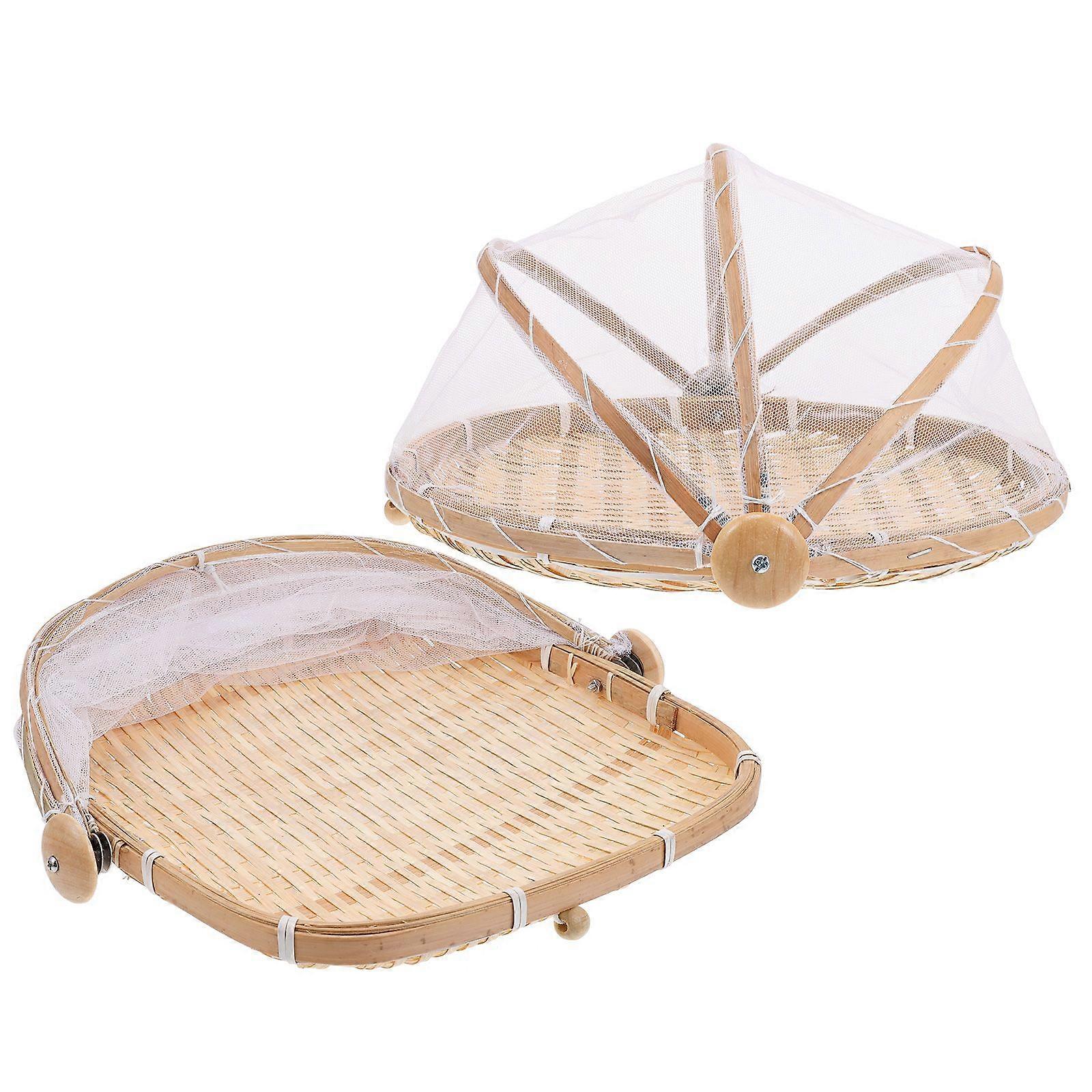 2pcs Decorative Bamboo Baskets Household Dustpan Baskets with Gauze Cover