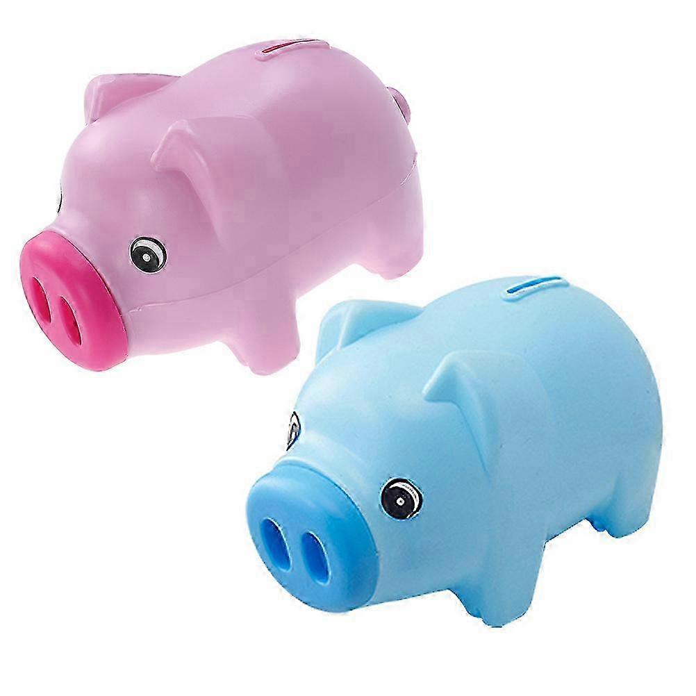 2pcs Piggy Bank Money Pot, Cute Pig Shape Saving Jar, Home Decor Coin Box (Pink + Blue, 19X11X10CM)