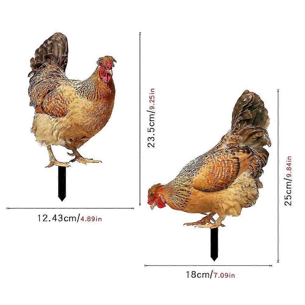 Set of 2pcs Hen Shaped Garden Stakes - Acrylic Decoration - For Garden, Lawn