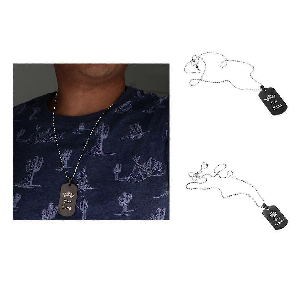 2pcs Her King His Queen Couple 24'' Necklaces Black Dog Tag Pendant Chain